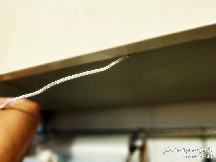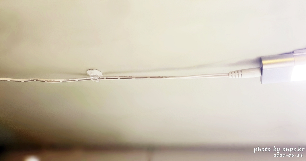 축 늘어지는 선을 클립에 끼우고 벽에 붙여서 고정해 주면 깔끔하게 선 정리가 끝납니다.