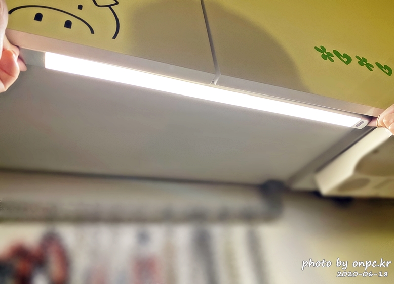 특별히 설치라고 할것도 없고 간편하게 부착하는 방식으로 설치를 했고 주방의 어두운 부분도 말끔히 해결했어요~