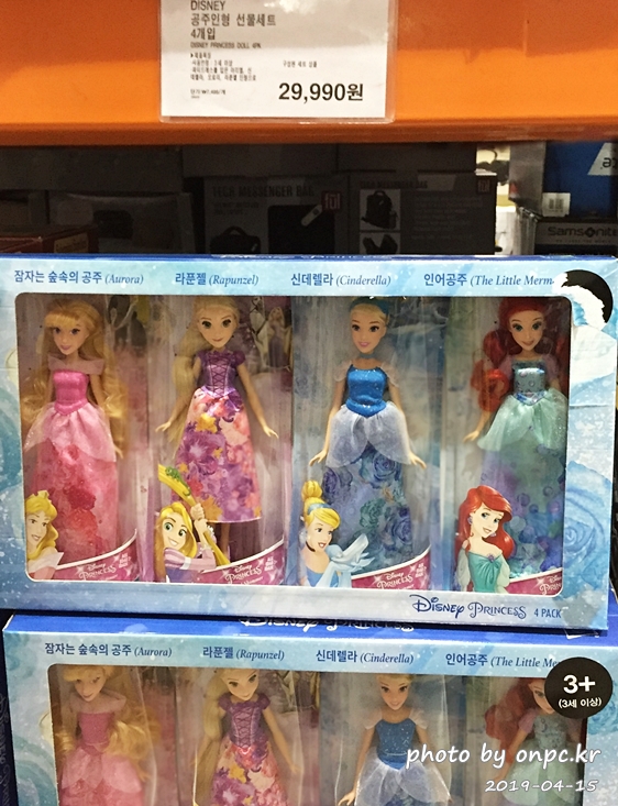 디즈니 공주 인형 선물세트 4개입(DISNEY PRINCESS DOLL 4PK). 가격은 29,990원.