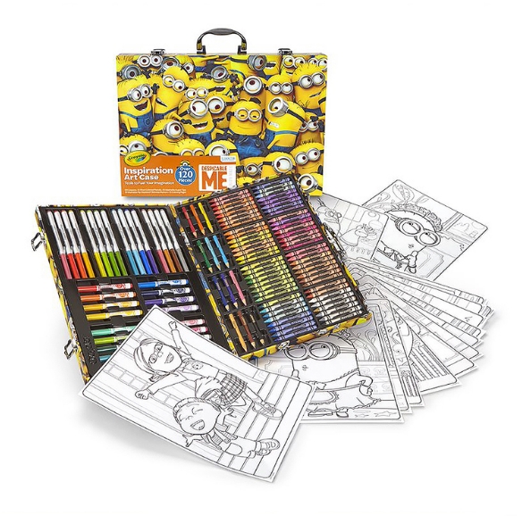 미니언즈 캐릭터로 디자인된 아트 케이스, 크레욜라 대표상품인 크레용, 색연필, 마카, 칼라링 페이지 구성 세트상품.