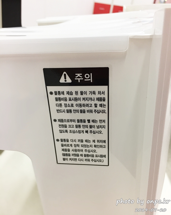 투명창으로 물통에 물 차이는걸 밖에서 볼 수 있으니 물 차는 정도를 보고 물통 비우기를 하면 됩니다.