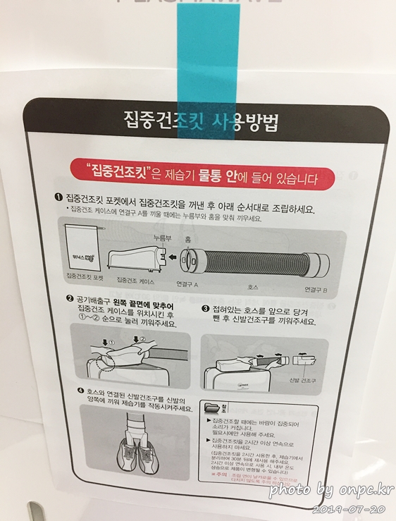집중건조 킷의 조립, 사용방법과 설명이 적힌 종이가 전면에 부착되어 있어요.