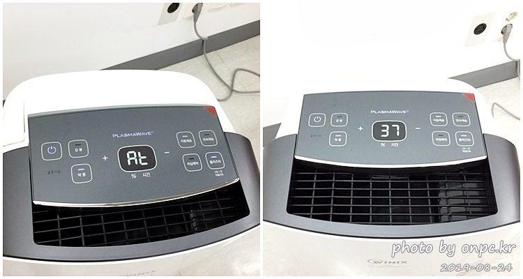 왼쪽 표시부의 <At>는 자동 제습 표시로.. 실내 습도를 따라 자동으로 설정되어서 작동합니다.