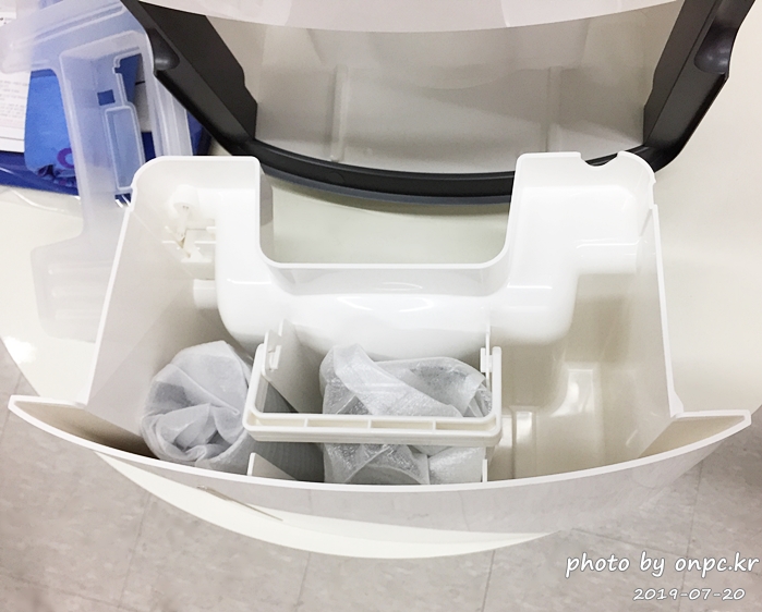 물통 덮개를 위로 분리해주고 중성세제로 물통 안쪽을 닦아주면 됩니다.