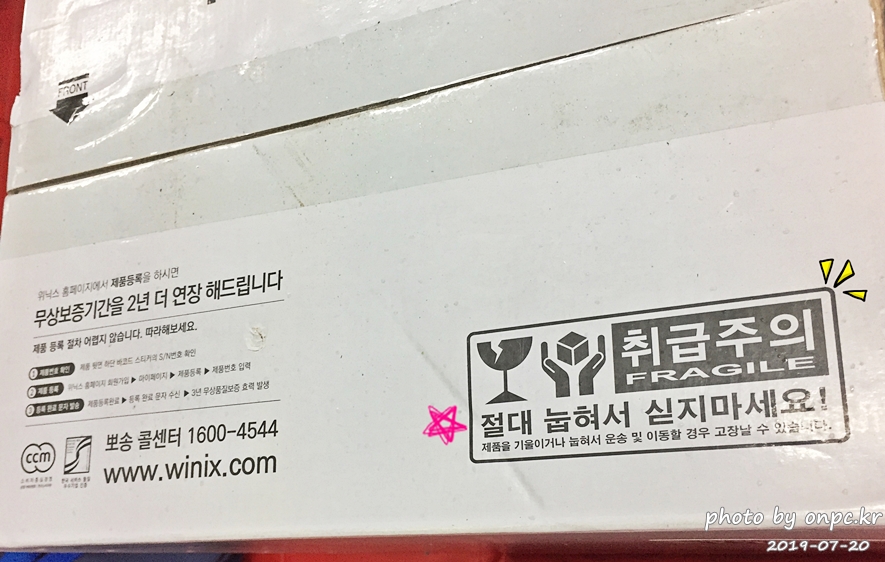 ※ 취급주의(FRAGILE): 절대 눕혀서 싣지 마세요!