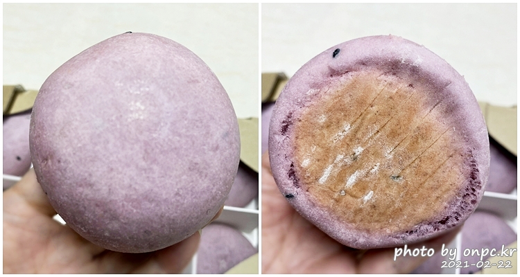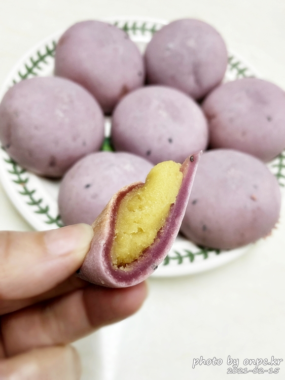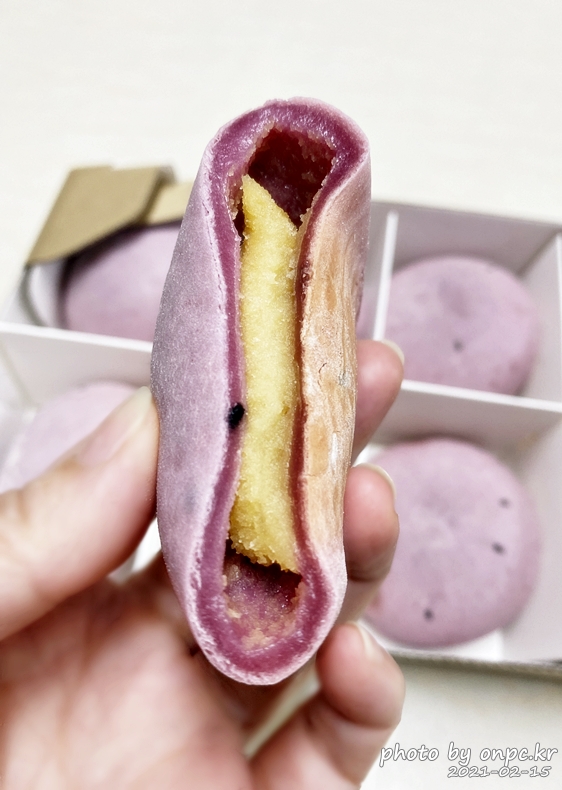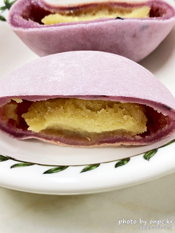 잘린 부분을 보면 찹쌀떡 안의 고구마? 마냥 겉면의 촉촉함과 쫄깃함이 눈으로 보이네요~