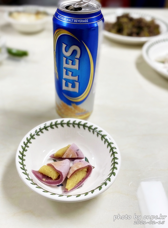 캔 맥주 하나당 고구마볼 하나 씩 먹기~ 피곤한 하루의 끝에 행복한 마무리!