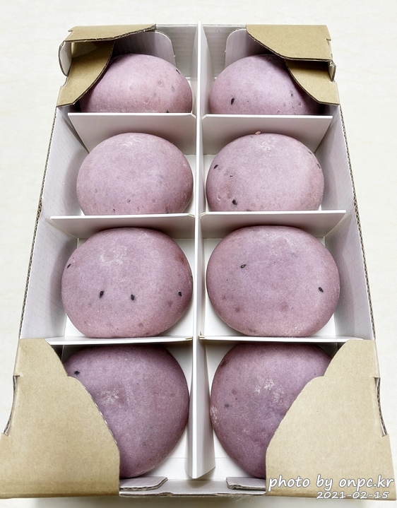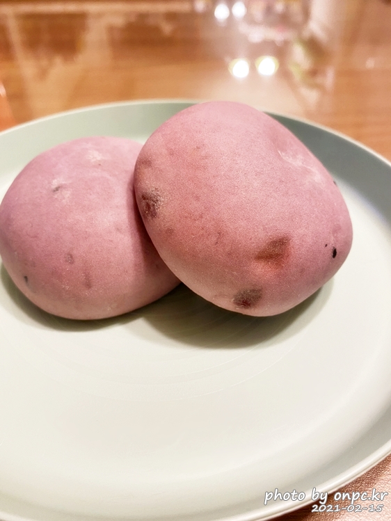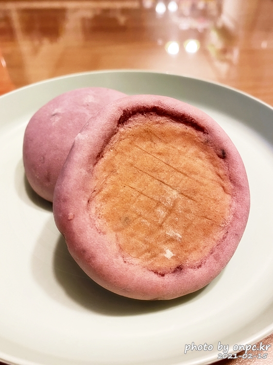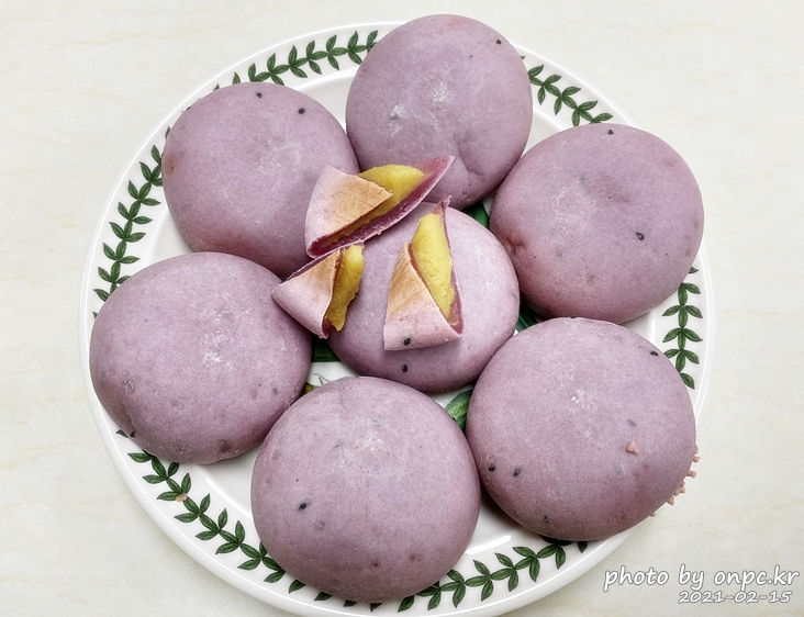 동그란 모양과 자색 고구마의 고운 색이 눈길을 사로잡네요.