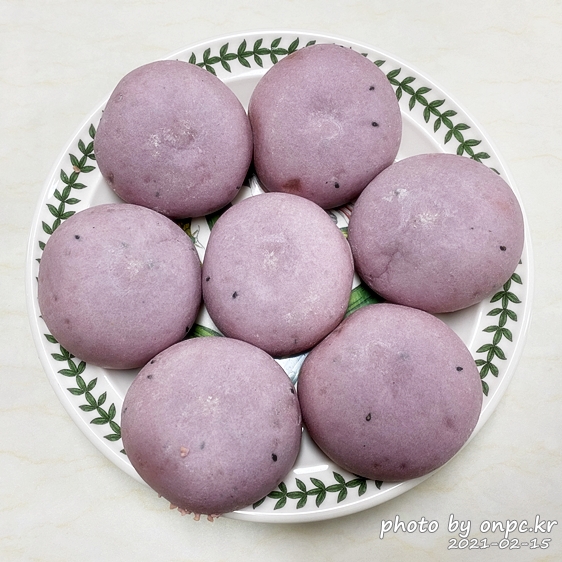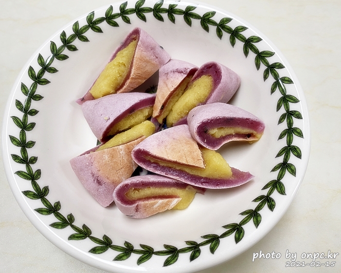 자색 고구마가 들어가니 보라색 빛이 조금 더 진하게 나는 거 같네요~