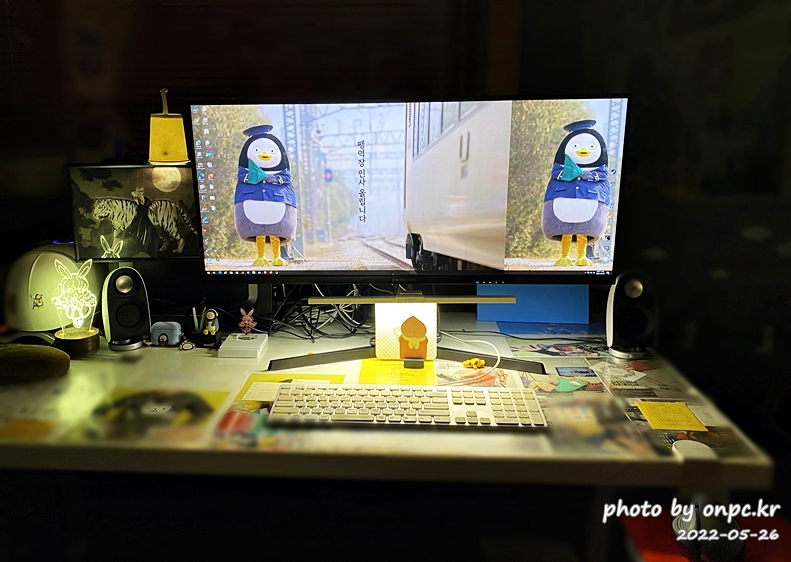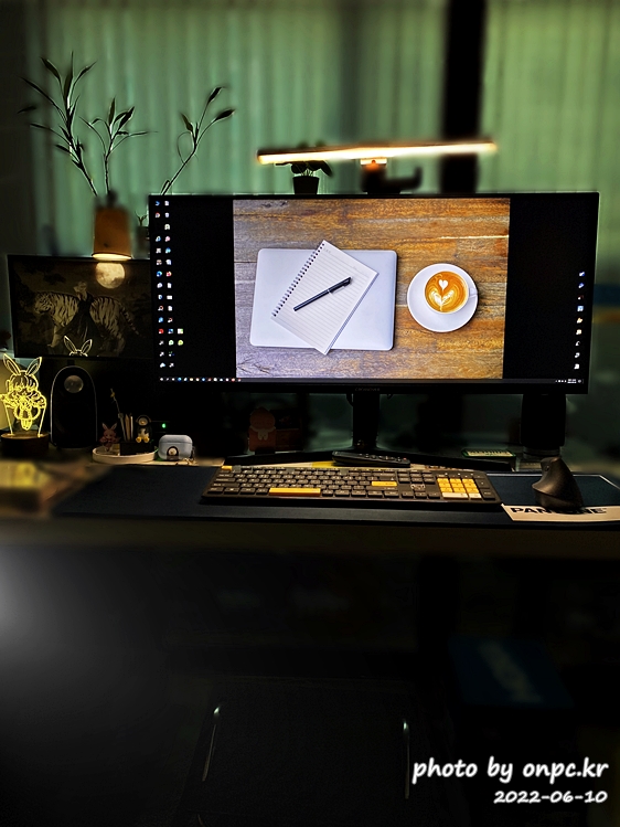밤에는 방 조명 대신 모니터 조명을 밝히고 분위기도 부드럽게 사용하고 있어요.