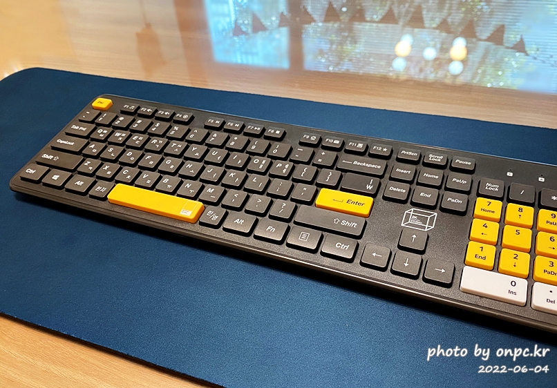 블랙 키보드에 숫자키, 스페이스, 엔터, Esc 에만 포인트로 들어간 노란색도 나름 잘 어울려서 괜찮아요.