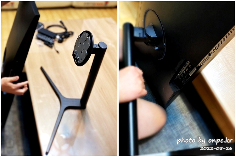 본체에 스탠드를 맞추고 끼워 결합해줍니다.