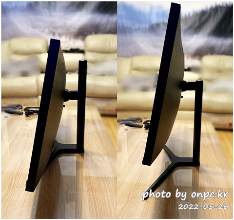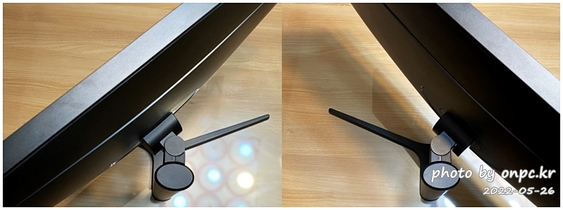 좌우 각도 조절과 패널을 아래로 숙이거나 살짝 들어 올려주는 틸트(Tilt) 기능으로 각도 조절이 가능해요~