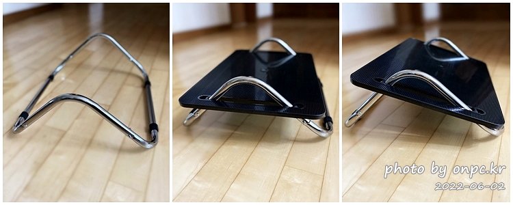 스틸 소재 프레임을 나사로 조립하고 ABS 플라스틱 소재의 받침을 위에 걸쳐주면 간단하게 완성됩니다.