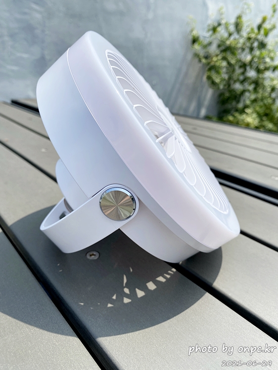 선풍기에 포함된 손잡이를 펴서 받침대로 세우면 살짝 눕혀지며 안정적으로 사용할 수 있어요.