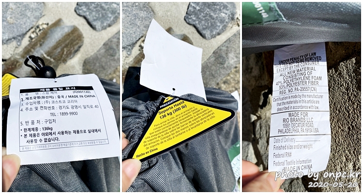 재질: 프레임- 스틸 튜브, 겉감-폴리에스터, 나일론, 컵홀더- 플라스틱