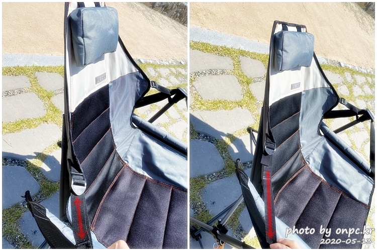 스트랩을 짧게 조절해서 등받이를 세운 모습이에요~
