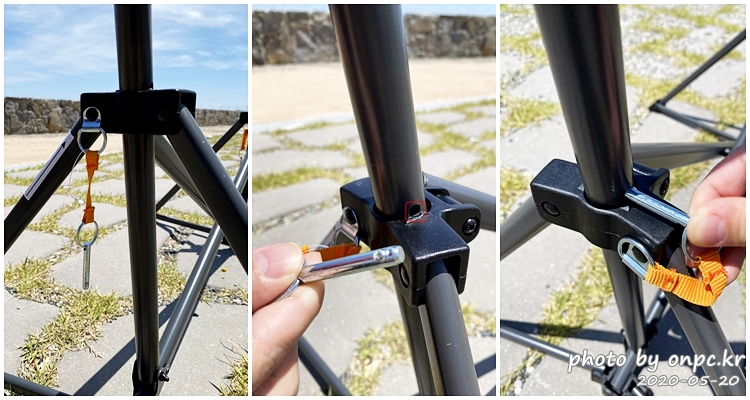 다리 프레임 좌, 우를 살펴보면 위 사진처럼 노란 고리에 걸려있는 쇠 핀이 두 개 보입니다.