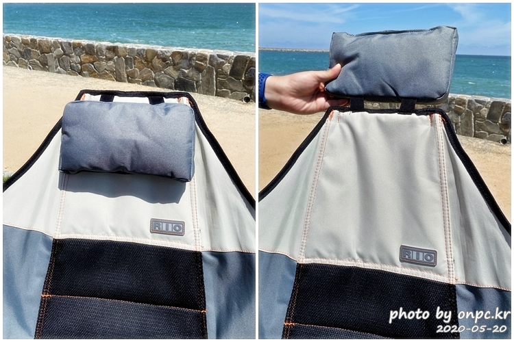 끈으로 각도 조절해서 몸을 뒤로 눕히고 편하게 베개를 베고 몸을 맡기면 돼요.