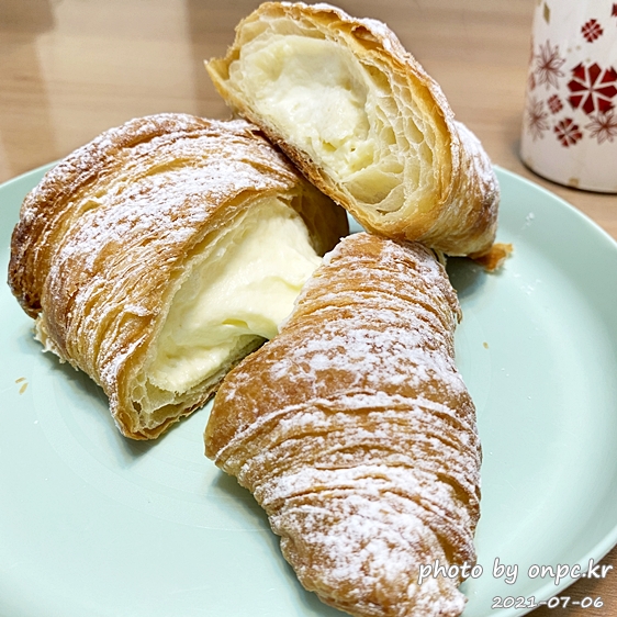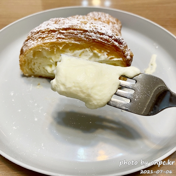 크림 없이 크루아상만 먹어도 정말 맛있어요. 크림도 너무 달지 않고 겹겹이 바삭한 빵과 크림의 조화가 정말 좋네요~