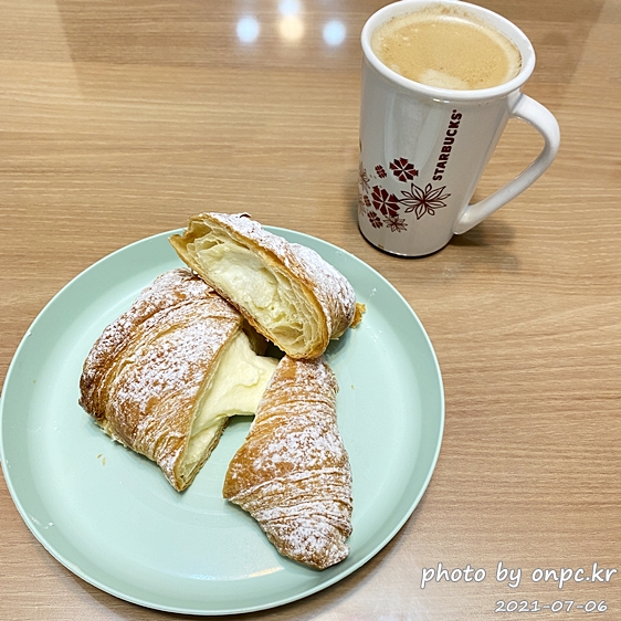 커피 한잔과 커스터드 필링 크라상~ 간식으로 딱 좋아요. ☕🥐
