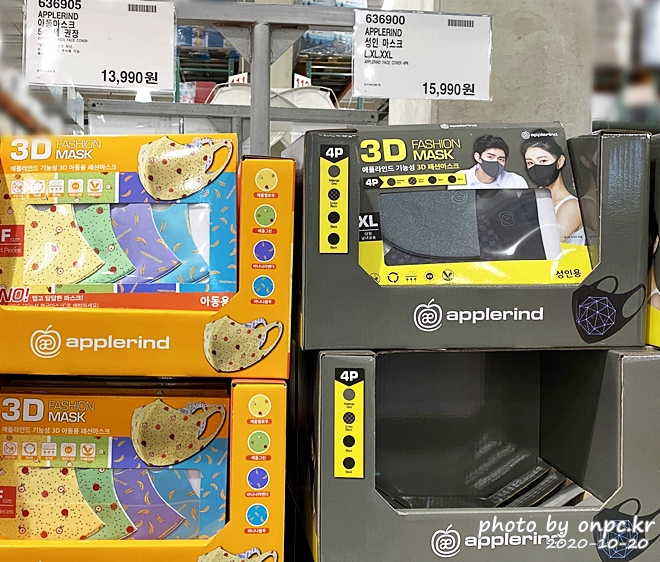 오른쪽) 애플라인드 성인 마스크(APPLERIND FACE COVER 4PK). 가격은 15,990원.