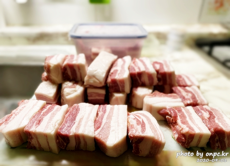 [코스트코] 한판 냉동 삼겹살 집에서 해동하고 손질 후 저렴하게 맛있게 먹기~!