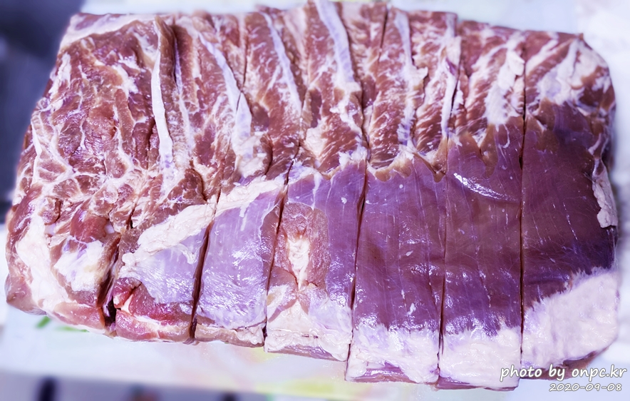 큼직하고 두툼하게 잘랐어요. 어떠세요? 보기에도 고기 질이 좋아 보이나요? ㅋ
