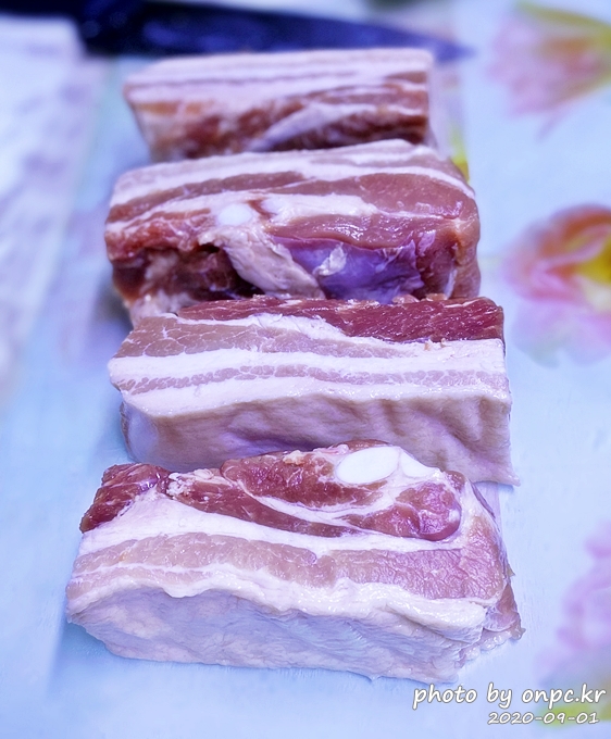 지방이 싫으신 분은 조금 제거해주시고 김치찌개 끓일 때 활용해보세요~