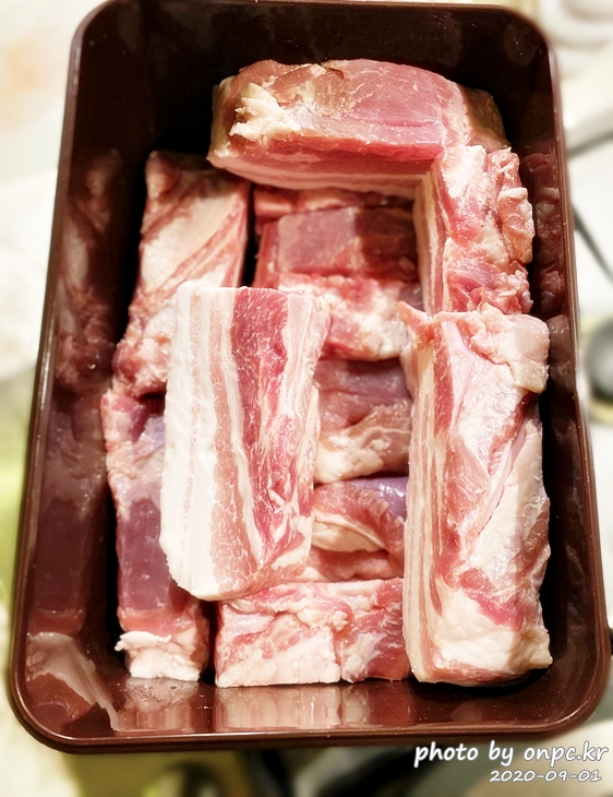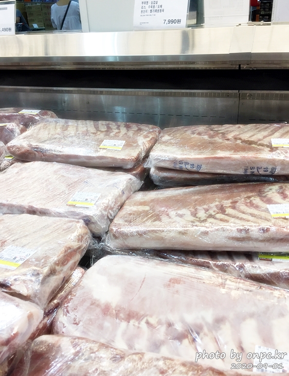 그래서 가끔은 농협 식자재마트나 코스트코에서 냉동 한판 삼겹살을 사서 저렴하게 먹곤 합니다.