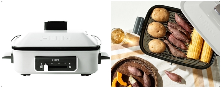 구성품: 본체, 딥 플레이트, 찜 플레이트, 그릴 플레이트, 전원 케이블, 오븐장갑, 사용설명서 / 색상: 아이보리, 그레이