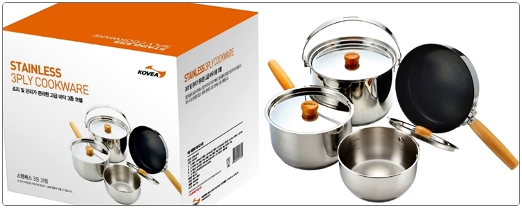 코베아 스테인리스 코펠 4종 세트(Kovea Stainless Cookware Set). 67,900원.