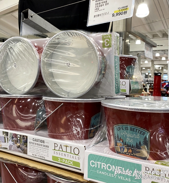 정원용/야외용 시트로넬라 향초 3개입(CAMPING CITRONELLA PATIO BUCKET 3PK). 가격은 13,490원.
