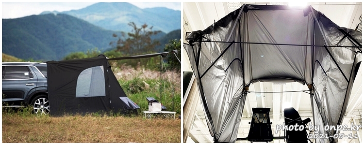 풀 오픈이 가능한 2면의 도어, 메쉬창으로 개방감과 환기가 용이 / 쉽게 설치 가능한 차량용 캠핑 도킹텐트 / 오토캠핑용 어닝 차박텐트