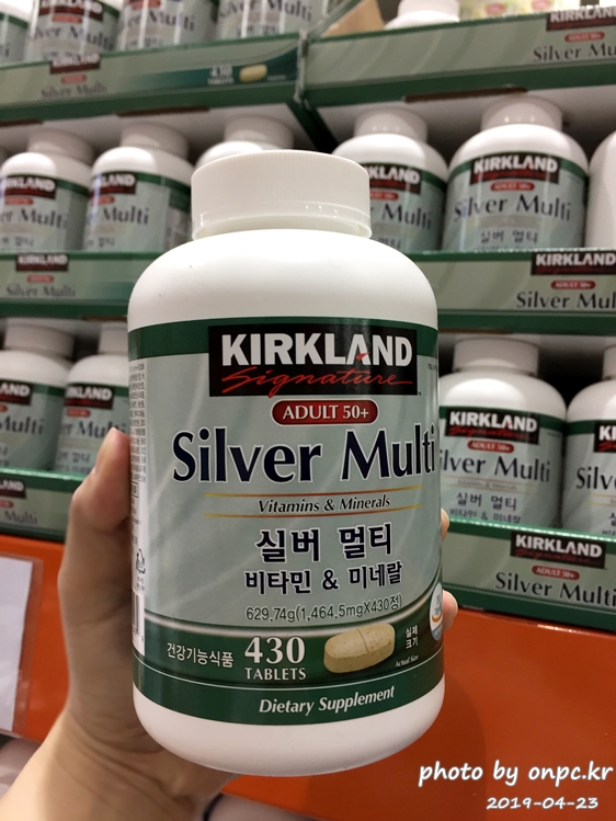 커클랜드 시그니처 실버 멀티비타민 & 미네랄(KS Silver Multi Vitamin & Mineral). 가격은 16,990원