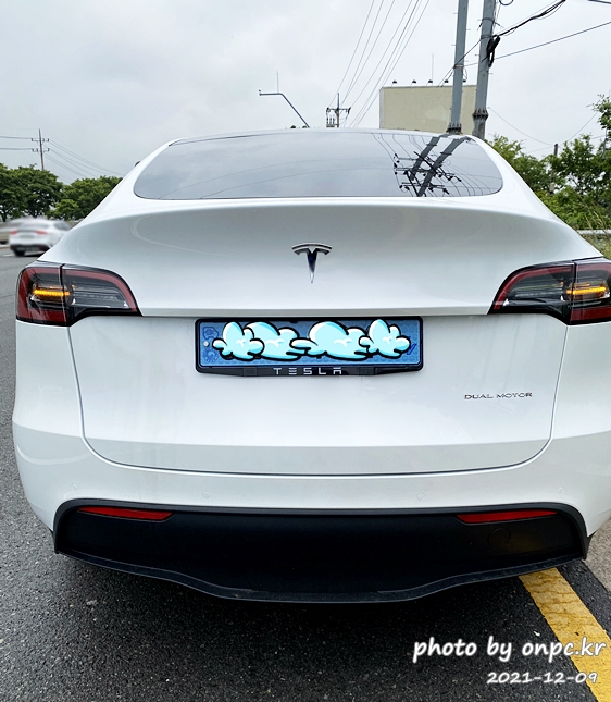 테슬라 모델 Y~ 뒤쪽 번호판 가드까지 모두 제거한 깔끔한 모습이에요~