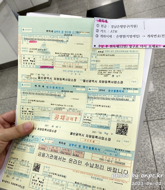 번호 선택이 끝나면 취득세 납부 고지서를 수령합니다.