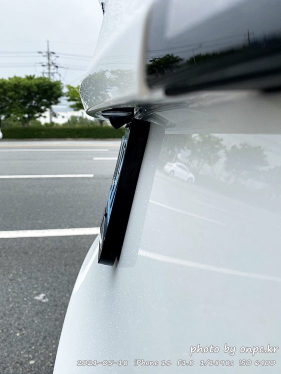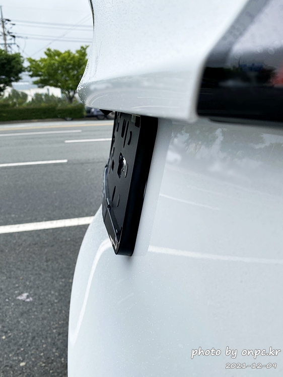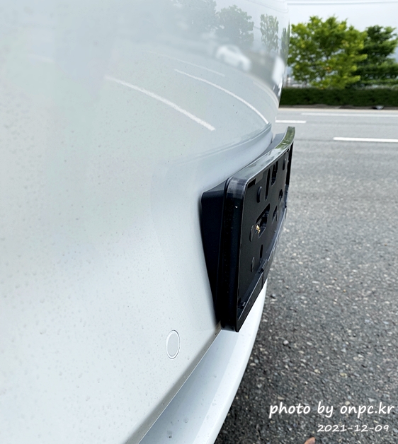 ⭐먼저 뒤쪽 번호판을 달기 전 번호판 가드를 옆에서 보면 차량에 밀착되지 않고 떠 있는 걸 볼 수 있습니다.