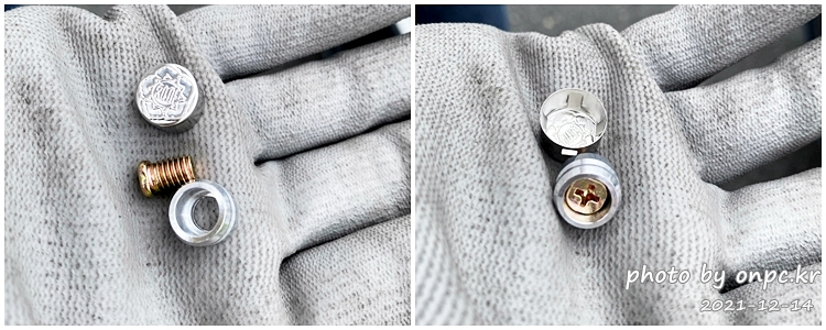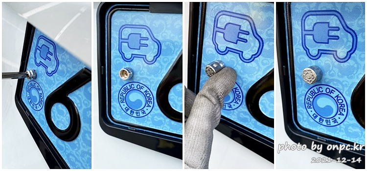정부 봉인 나사는 위 오른쪽 사진처럼 나사를 가운데 홀에 넣어 번호판에 고정 후 봉인 캡을 씌워주면 모두 끝납니다.