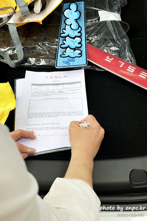 그다음엔 물품 지급 리스트를 확인하시고 차량 인도증에 사인받고 떠나십니다.