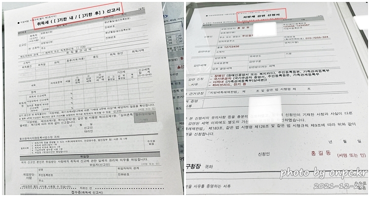 자동차 신규등록 신청서 / 취득세 신고서 / 지방세 감면 신청서(전기, 하이브리드 등)