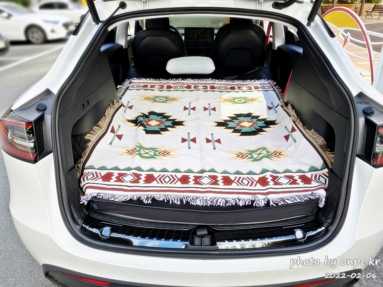 모델 Y는 기본적으로 어느 정도의 평탄화가 되어 있어서 제대로 된 차박 매트만 있으면 차박에서 별 어려움은 없습니다.