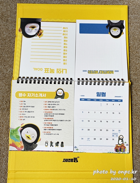 고급스러운 재질의 펭수 달력이에요. 같이 구경하러 가보실까요~