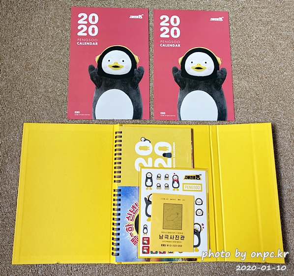 g마켓에서 2019년 12월 23일 예약 판매로 구입한 펭수 달력을 2020년에 드디어 배송받았어요.