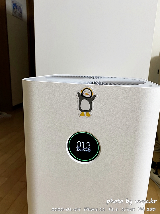 공기청정기 위에도 펭수 스티커를 붙여주고~