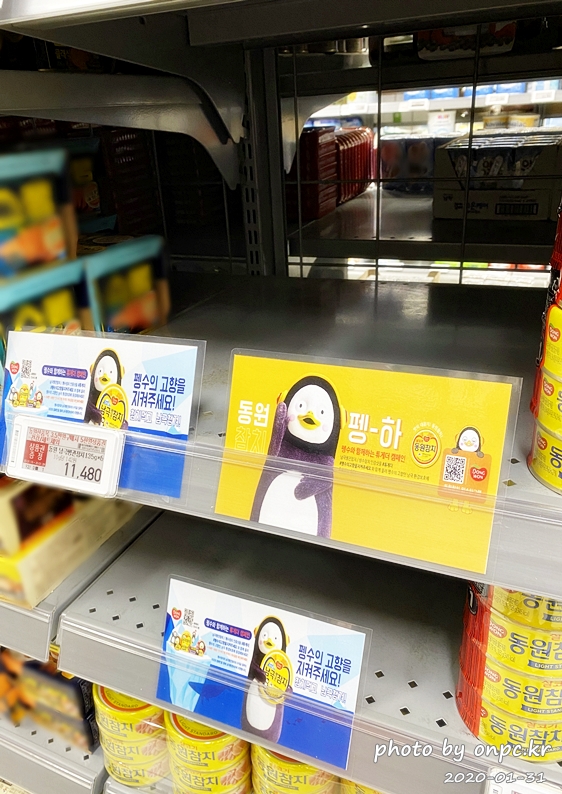 마트 방문했을 때 볼 수 있는 펭수 참치 일부 품절ㄷㄷ 펭클럽 분들이 많이 다녀갔나봐요~ ㅋ