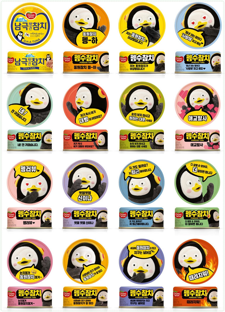네! 전 귀엽습니다, 세상에 동원참치는 많고 지구는 넓어요" 까지 새로운 5개의 펭수 참치!