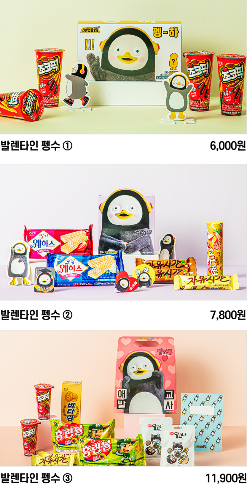 발렌타인 펭수 세트 3종. 가격은 6000원 ~ 1만1900원까지
