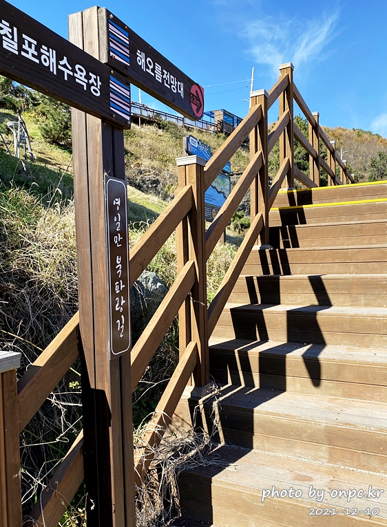 해안가 따라 걸어 올라오다 보니 도로 위로 나오는 데크길~