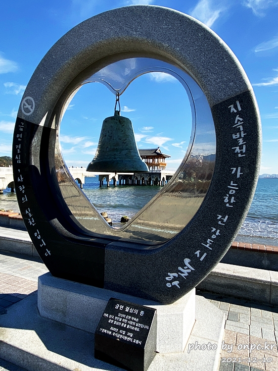 종 뒤로 전망대가 겹쳐 보입니다. 새해 일출을 바라보며 금연을 결심할 수 있게 종을 쳐보세요~